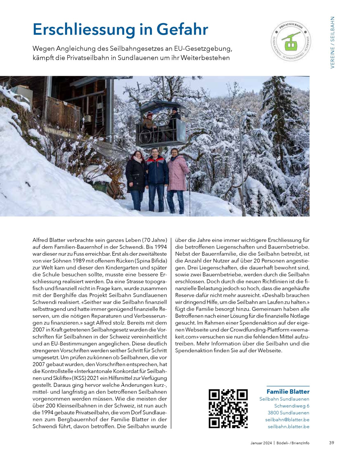 Der Weber Verlag hat uns freundlicherweise eine Seite im Bödeli Info (Ausgabe Januar 2024) gesponsert. Dies hilft uns enorm, um auf unser Problem und das damit ins Leben gerufene Crowdfunding aufmerksam zu machen. Vielen Herzlichen Dank!